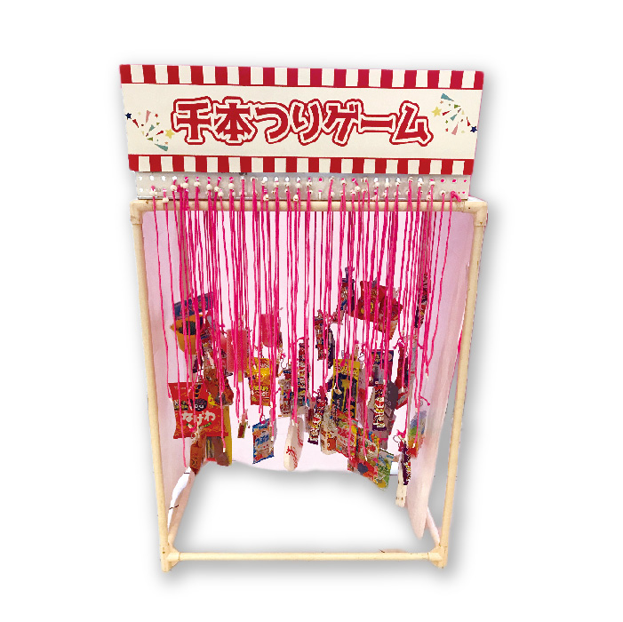 【セット内容】 ・千本釣り枠・紅白幕・景品100個 【利用方法】 ①紐の先に景品をくくります。 ②紐を1本ずつ引き、釣り上がった景品はお客様に差し上げます。 ※1度引いた紐は手前に引いておくと同じロープを引く心配がありません。 ※景品は紐に取付やすいものをご用意させて頂きます。 ※組み立てが必要な商品です。※景品の追加手配は50個(5,000円)~承ります。